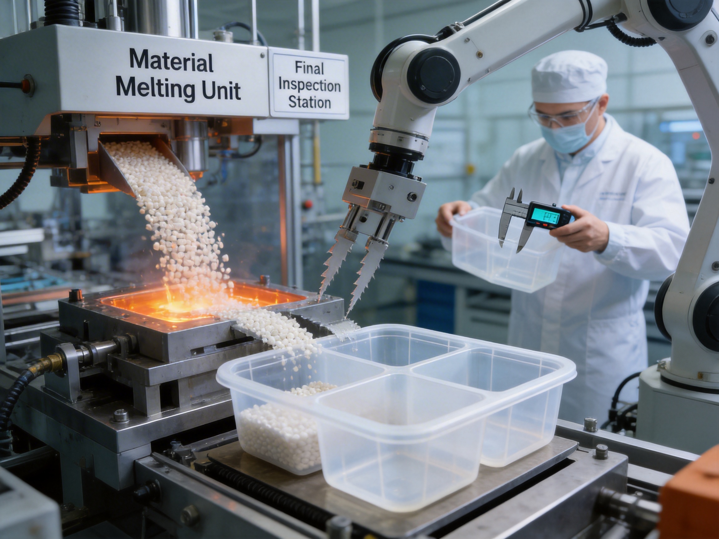 The manufacturer sources only high-quality food-grade PE and PP raw materials from trusted global suppliers. Each batch of raw materials undergoes rigorous testing to ensure compliance with food safety regulations, including: - FDA (U.S. Food and Drug Administration) Standards: Ensures materials are safe for contact with food. - EU Food Contact Regulations: Aligns with European safety requirements for packaging materials. - Chinese National Food Safety Standards: Meets local regulatory requirements for domestic and international markets. The blend ratio of PE and PP is carefully calibrated to optimize the container’s performance—balancing flexibility (from PE) and rigidity (from PP) to create a product that is both durable and easy to handle.