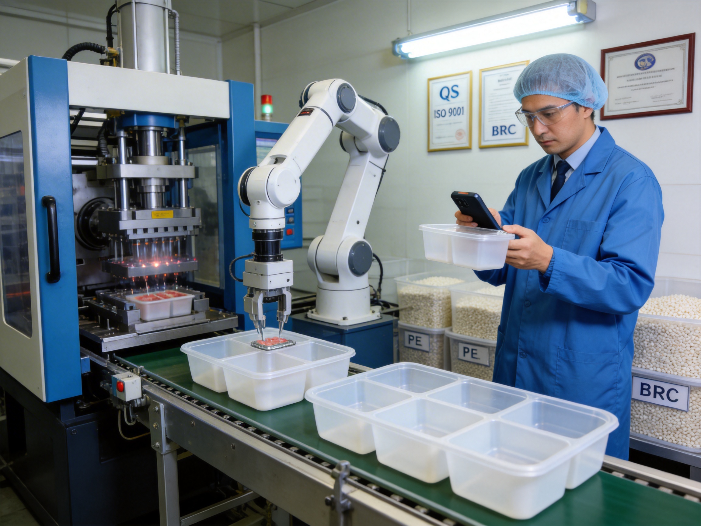 A: These containers are made from high-purity, food-grade PE and PP materials that are free from toxic additives (e.g., BPA, phthalates). They have been certified by global regulatory bodies (QS, ISO 9001, BRC, DIN, EU RoHS+) to ensure compliance with food safety standards. Third-party testing confirms that they do not leach chemicals into food, even when exposed to extreme temperatures.