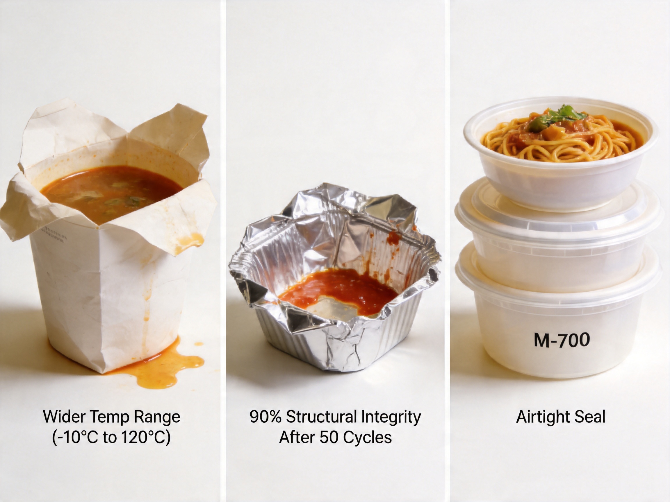 Many competing packaging solutions—such as paper containers or aluminum foil—have limited temperature tolerance. Paper containers, for example, can become soggy when holding hot liquids and are not microwave-safe. Aluminum foil, while heat-resistant, is not suitable for cold storage and can react with acidic foods. In contrast, modern plastic takeaway containers handle both hot and cold temperatures seamlessly, making them a versatile choice for all food types.