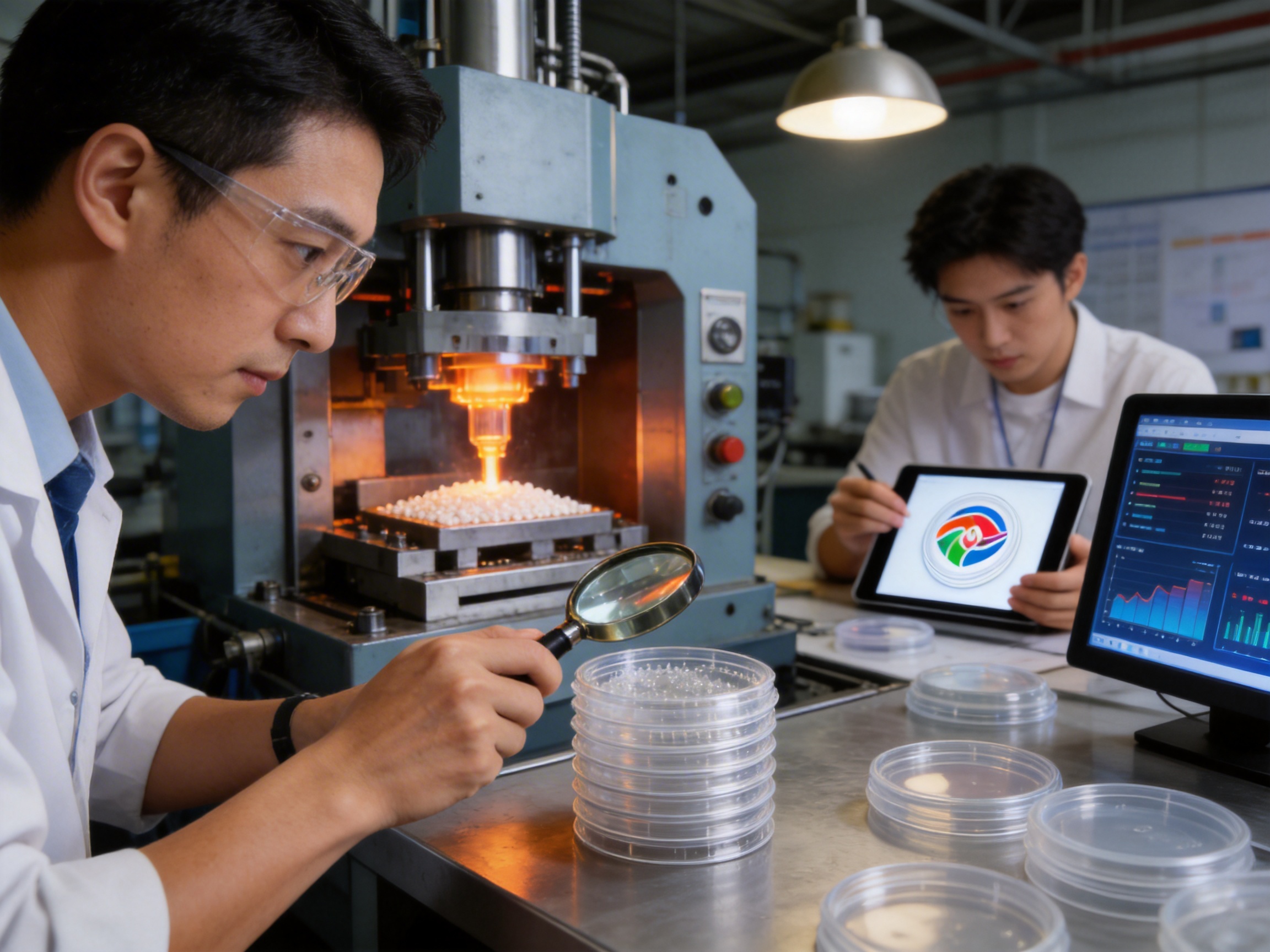 Raw Material Inspection: PET pellets are tested for purity, contaminants, and compliance with food-grade standards before production begins.